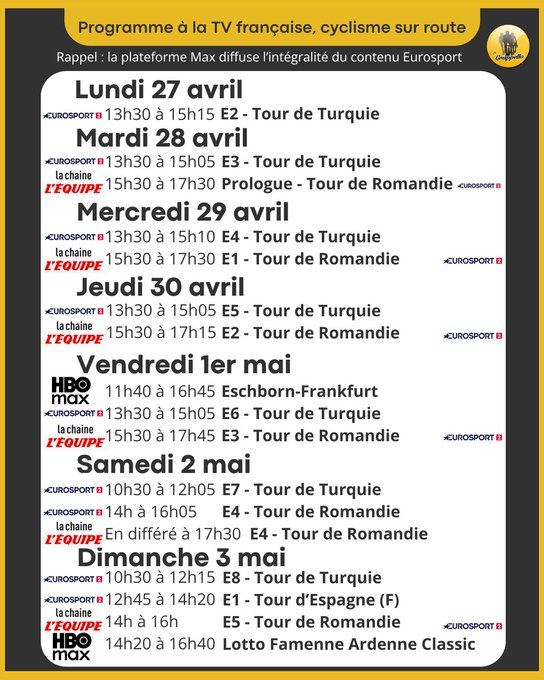 Bienvenue sur Velotv le site où vous pourrez retrouver toutes les diffusions cyclisme à la télévision Française.